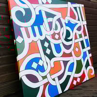 Bold and resolute, this work captures both strength and hope through its commanding presence. The central inscription: ‘What is coming for you is better than what has passed’, emerges in larger, more powerful strokes, anchoring the composition with clarity and purpose. The amplified text becomes both message and form, radiating resilience and renewal.